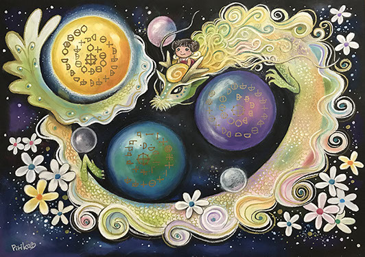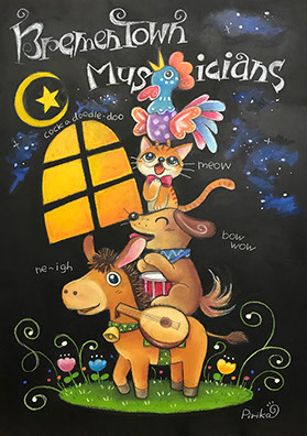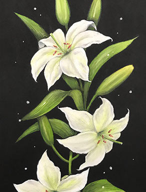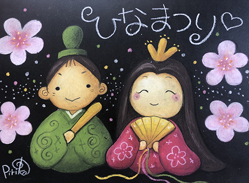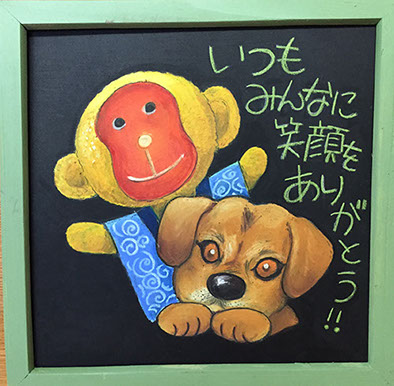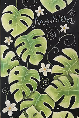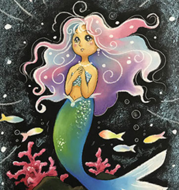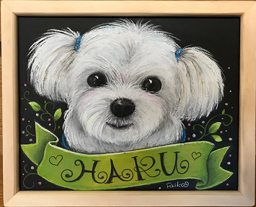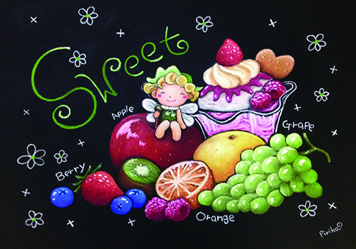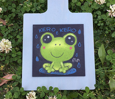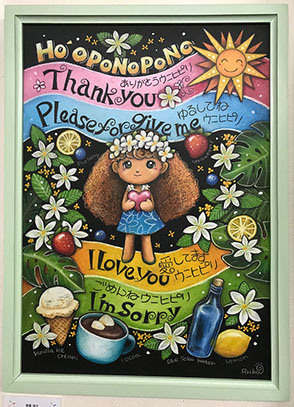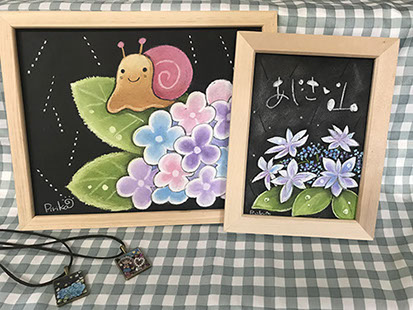 チョークアートはオイルパステルを使ってブラックボードに色を重ね指でぼかして描く近代アートです。最後に触っても消えないように加工して完成させます。